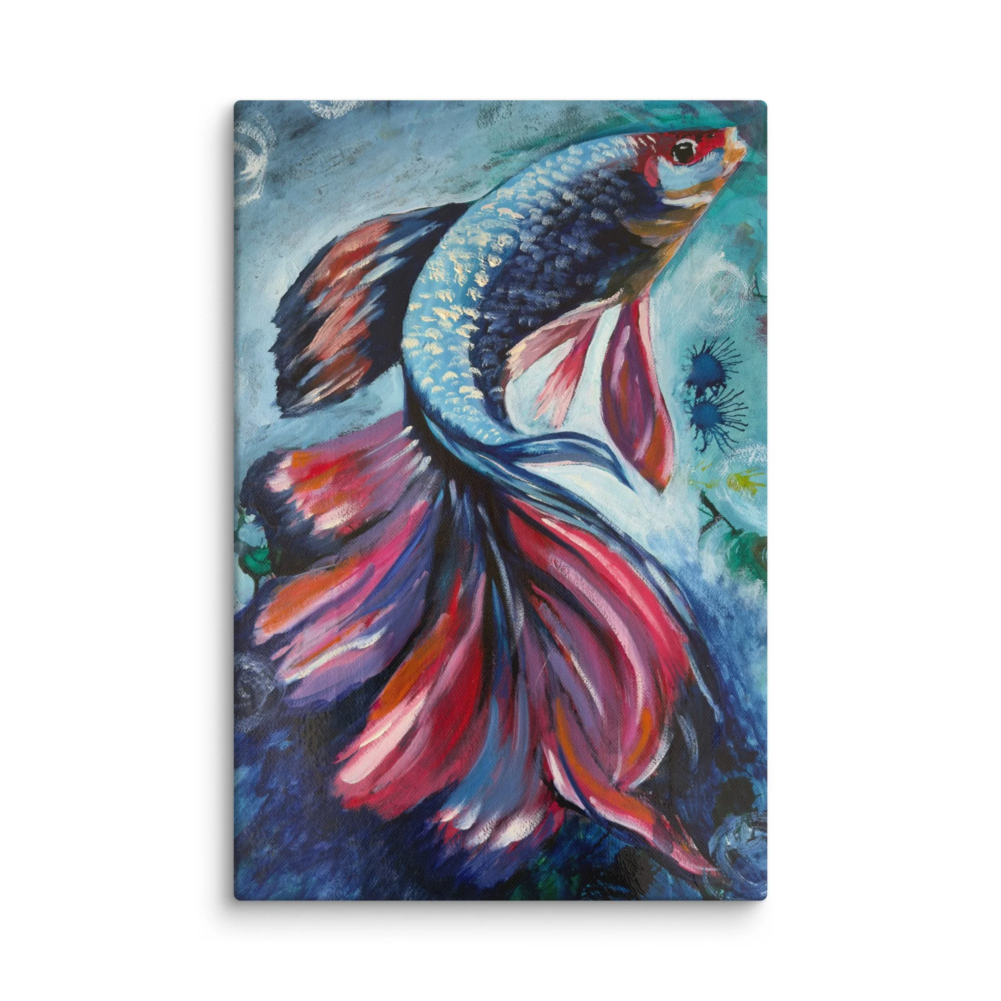 This radiant betta glides through shifting waters with fearless color and fluid grace, symbolizing resilience, renewal, and the quiet strength of moving forward.