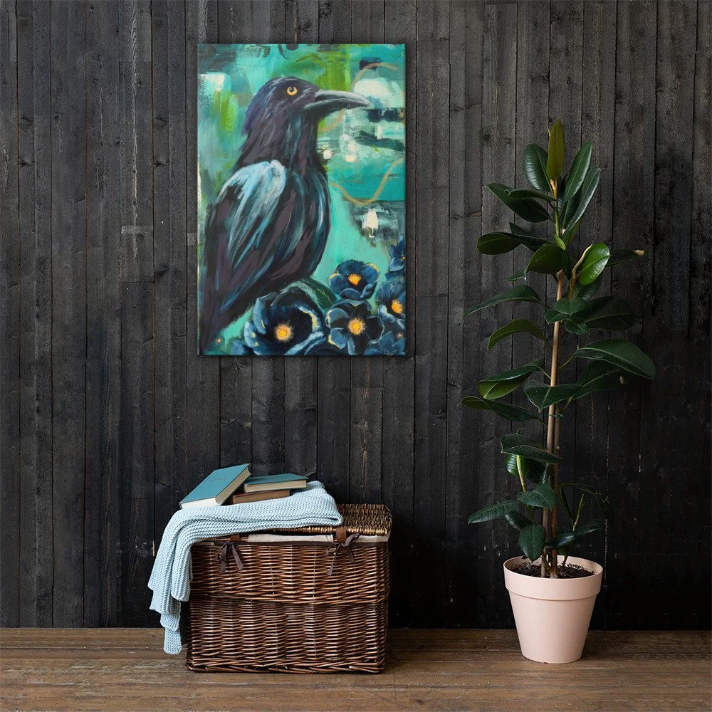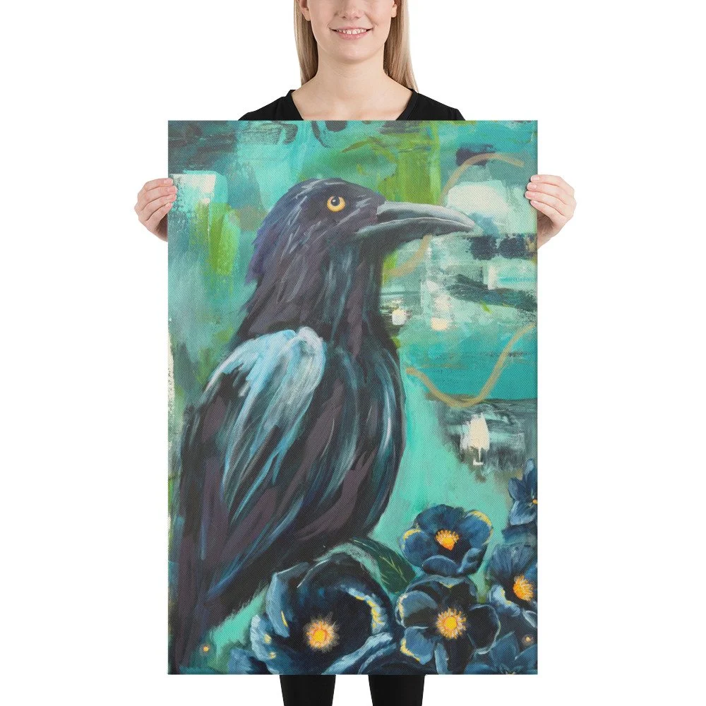 Gallery Boutique › Ashes and Seeds Image 1 of 3 Image 2 of 3 Image 3 of 3 Ashes and Seeds $70.00 A raven rises from luminous blossoms that glow like embers. A powerful reminder that new life grows from places that once felt lost. 24" X 36" • 1.25″ (3.18 cm) thick poly-cotton blend canvas • Canvas fabric weight: 10.15 +/- 0.74 oz./yd.² (344 g/m² +/- 25g/m²) • Fade-resistant • Hand-stretched over solid wood stretcher bars • Mounting brackets included • Blank product sourced from the US, Canada, Europe, UK, or Australia Quantity: Purchase Added! A raven rises from luminous blossoms that glow like embers. A powerful reminder that new life grows from places that once felt lost. 24" X 36" • 1.25″ (3.18 cm) thick poly-cotton blend canvas • Canvas fabric weight: 10.15 +/- 0.74 oz./yd.² (344 g/m² +/- 25g/m²) • Fade-resistant • Hand-stretched over solid wood stretcher bars • Mounting brackets included • Blank product sourced from the US, Canada, Europe, UK, or Australia