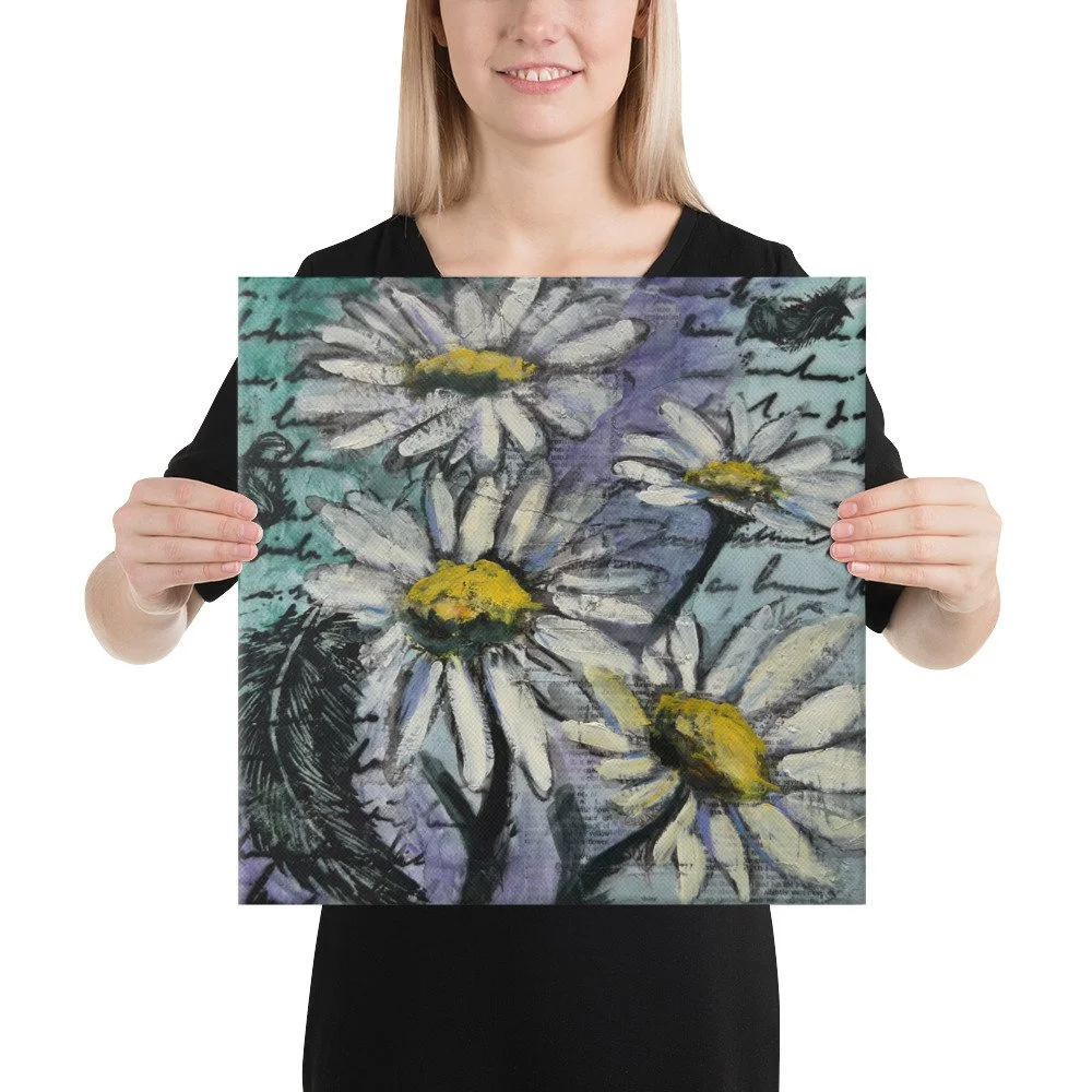 Gallery Boutique › New Light Image 1 of 1 New Light $58.00 Spray paint, block printing, acrylic, and oil Bright daisies rise through teal and violet layers, symbolizing innocence and renewal. This artwork celebrates fresh beginnings and restored hope. 16"x16" • 1.25″ (3.18 cm) thick poly-cotton blend canvas • Canvas fabric weight: 10.15 +/- 0.74 oz./yd.² (344 g/m² +/- 25g/m²) • Fade-resistant • Hand-stretched over solid wood stretcher bars • Mounting brackets included • Blank product sourced from the US, Canada, Europe, UK, or Australia Quantity: Purchase Added! Spray paint, block printing, acrylic, and oil Bright daisies rise through teal and violet layers, symbolizing innocence and renewal. This artwork celebrates fresh beginnings and restored hope. 16"x16" • 1.25″ (3.18 cm) thick poly-cotton blend canvas • Canvas fabric weight: 10.15 +/- 0.74 oz./yd.² (344 g/m² +/- 25g/m²) • Fade-resistant • Hand-stretched over solid wood stretcher bars • Mounting brackets included • Blank product sourced from the US, Canada, Europe, UK, or Australia