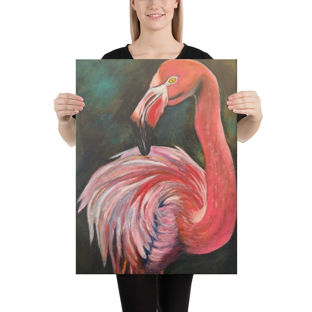 Strike a Pose captures the playful elegance of a flamingo caught mid-moment, feathers swirling in vibrant pinks and soft pastels. With its bold posture and expressive color, this piece brings confidence, charm, and a touch of whimsy to any space.