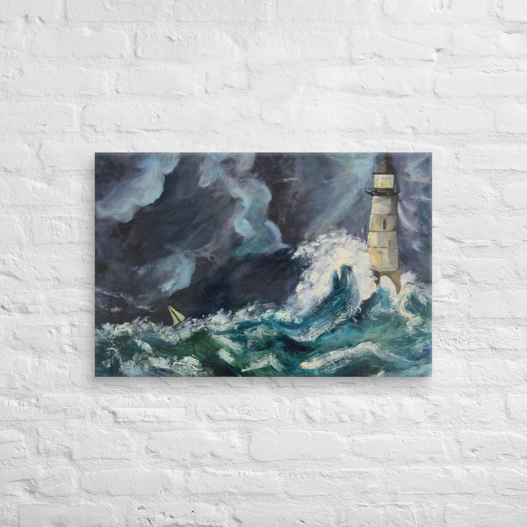 This painting speaks to the sacred act of continuing of choosing light even when surrounded by wreckage. The contrast between the delicate vessel and the vast, turbulent ocean evokes the emotional tension between vulnerability and courage. For collectors drawn to surreal symbolism and emotionally charged abstraction, Traveling to the Light offers a visual narrative of endurance, transformation, and the luminous power of hope.
