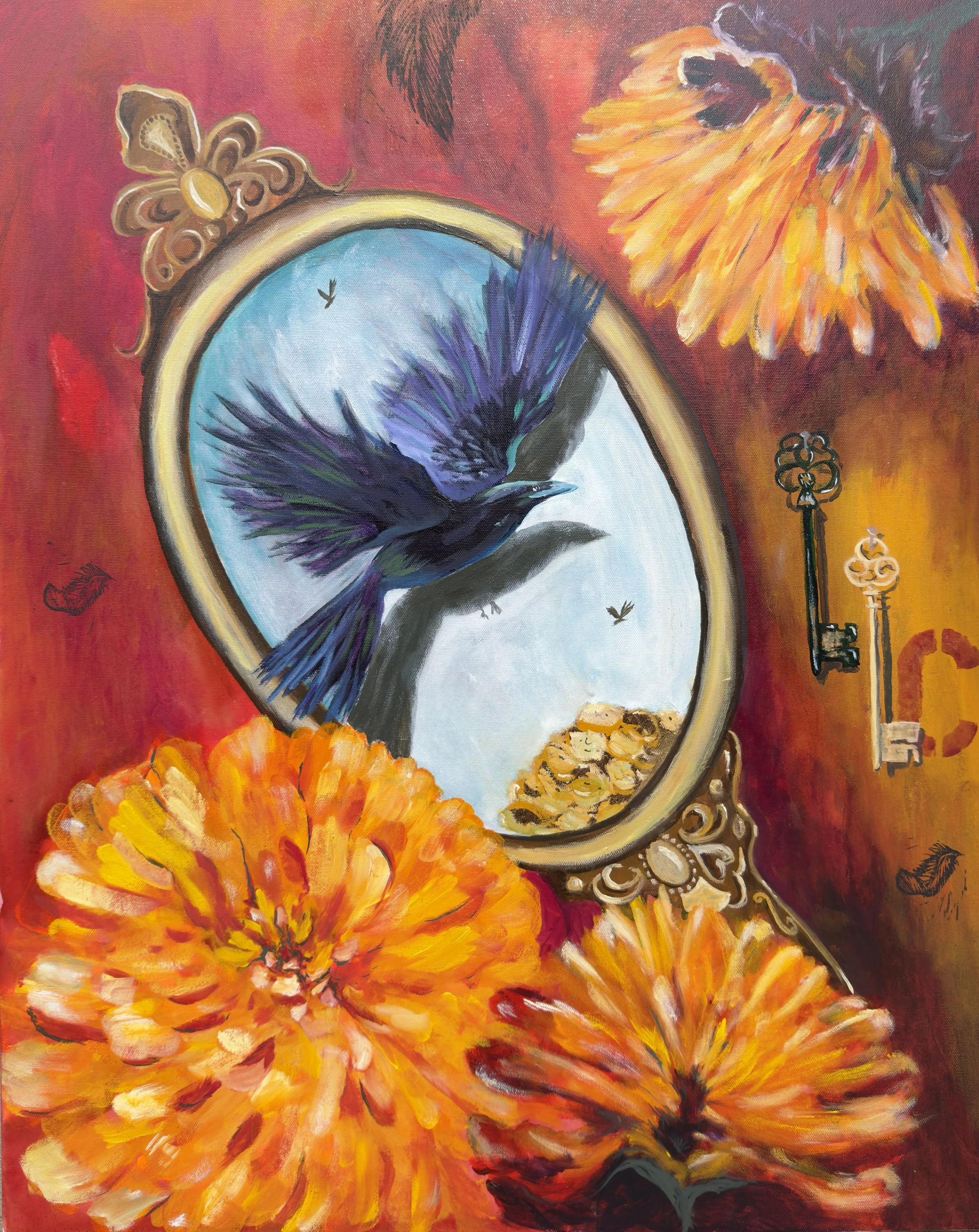 Each painting is a one-of-a-kind statement, rich in color, symbolism, and soul.